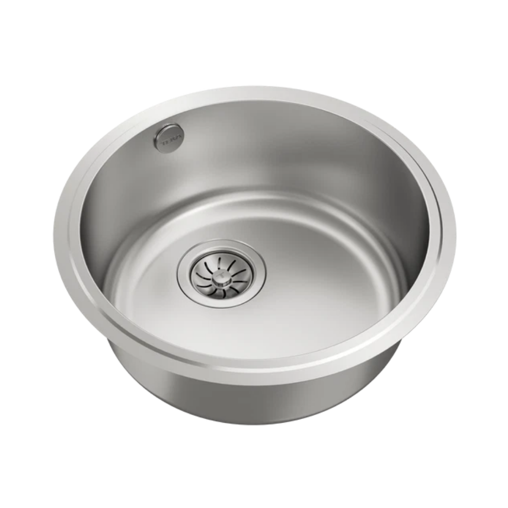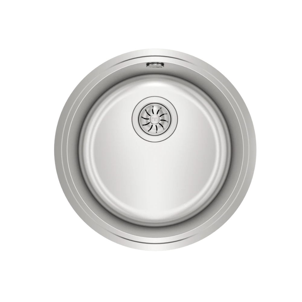 Se trata de un fregadero de una sola cubeta con un diámetro de 39 cm y una profundidad de 180 mm, ofreciendo una capacidad adecuada para el uso cotidiano sin ocupar demasiado espacio. Su diseño está pensado para integrarse en muebles de 45 cm, optimizando la distribución de la cocina y facilitando el flujo de trabajo.